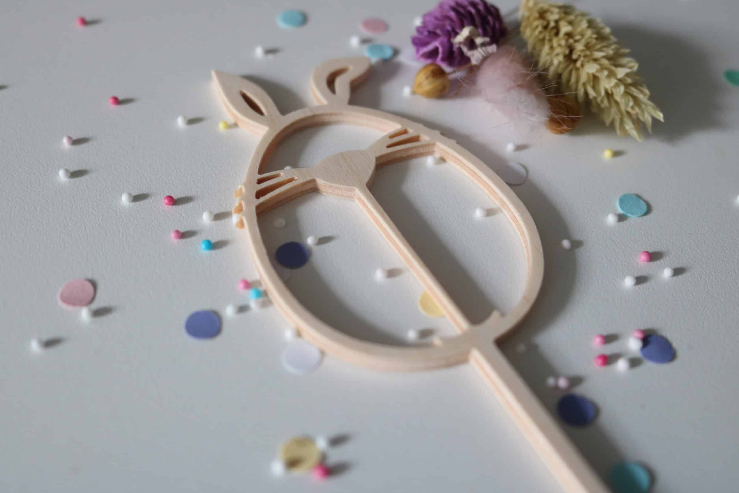 Vermeidung von Splittern: Überprüfe den Cake Topper auf Splitter oder raue Stellen, die beim Servieren Verletzungen verursachen könnten. Schleife gegebenenfalls scharfe Kanten ab.