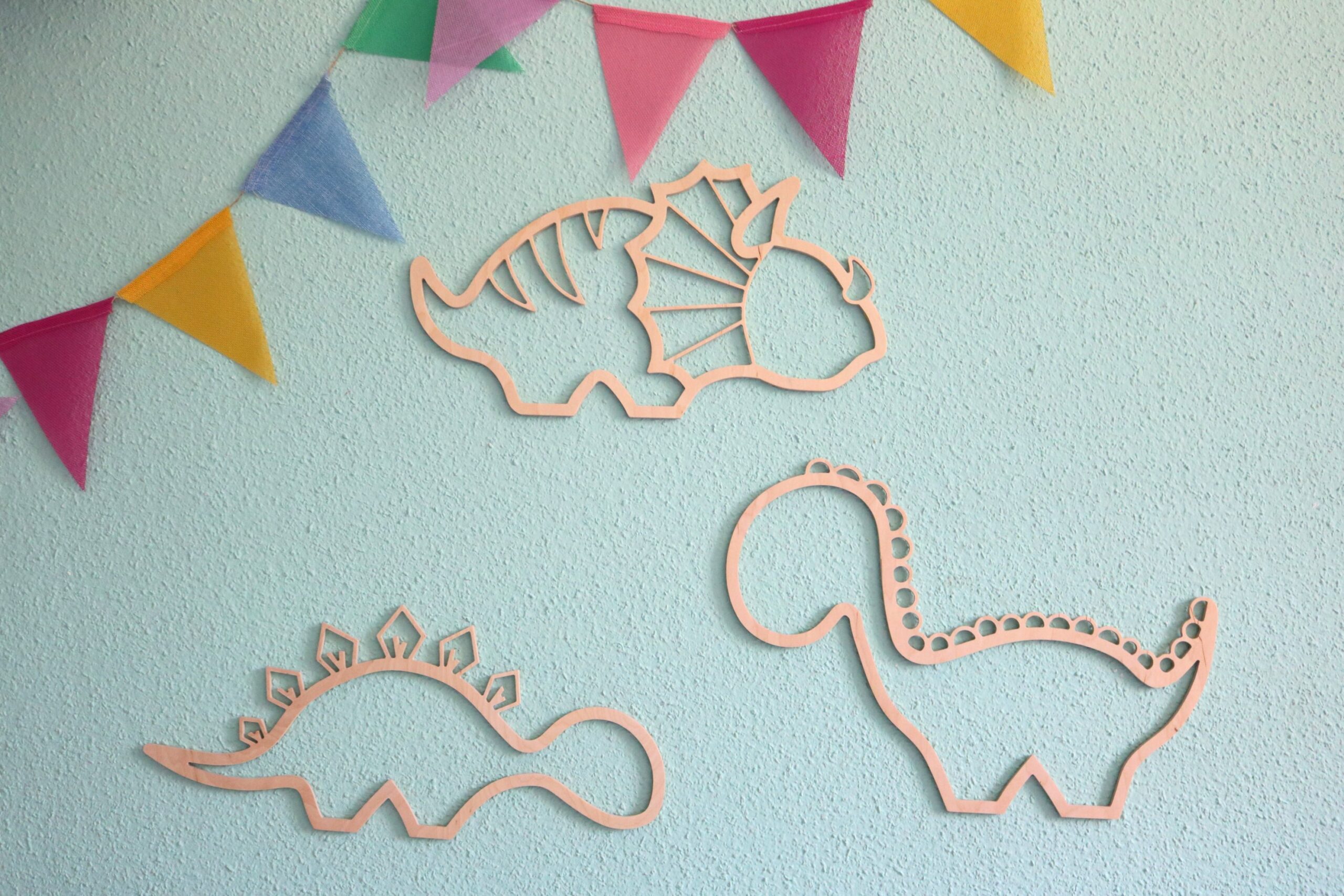 Dino Set, bestehend aus 3 verschiedenen Dinosauriern. Diese 3 Dinos sind aus 5 mm dicken Sperrholz gefertigt.