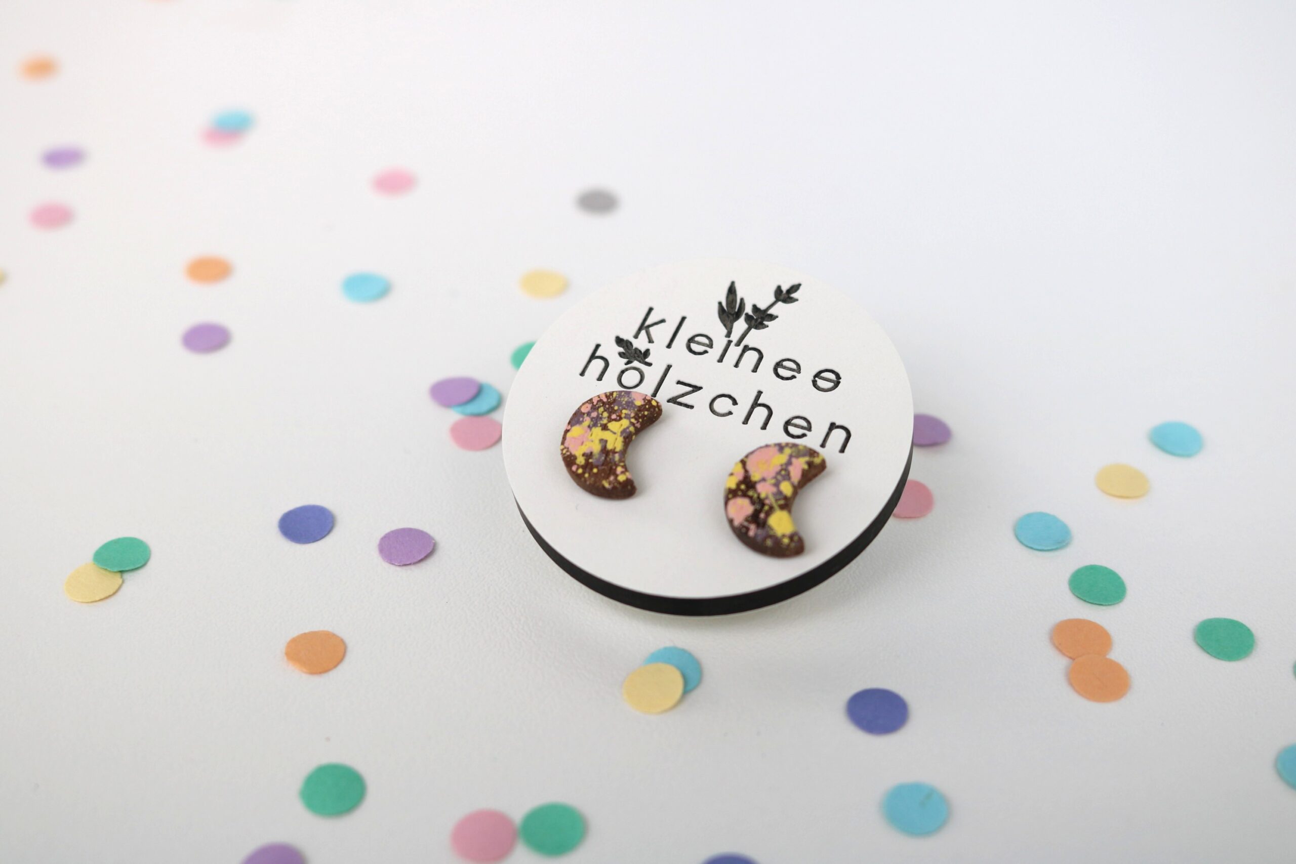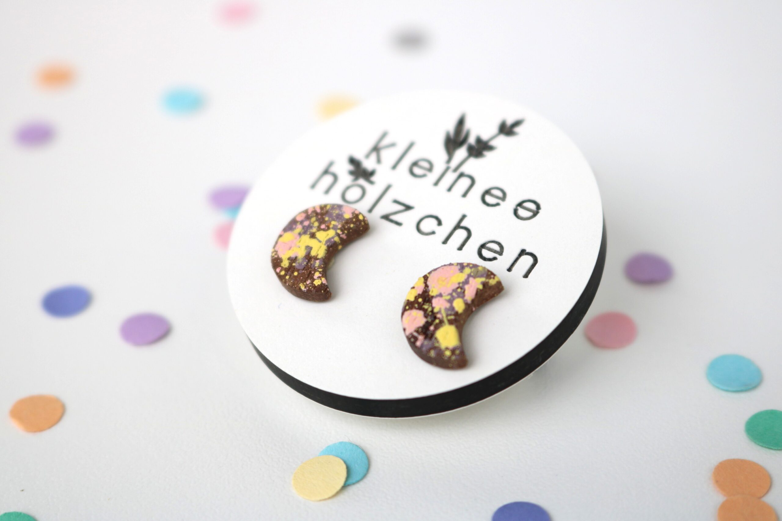 OHRRINGE | Halbmond | Farbkleckse lachs, gelb, lila